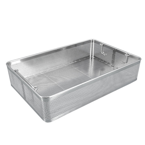 Cesta de drenaje de tela de alambre de acero inoxidable grueso de corte personalizado para embalaje ortopédico quirúrgico esterilización de limpieza ultrasónica